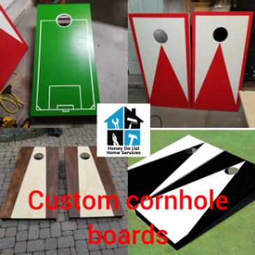 PRO SERIES CORNHOLE BOARDS/BEAN BAG BOARDS Two official size cornhole boards stained and sealed. Made with premium grade lumber. 2 Feet x 4 feet with 6 inch hole 3/4 inch surface with center brace to prevent bounce. All edges rounded with a router to prevent dings. Sealed and stained with Varathane. 6 coats of polyurethane for a great fast playing surface. All built with pocket holes and screws. Legs have cross member for extra support. Don't buy something cheap that won't last. This is Hand Made over several days not mass produced. Free delivery in Burlington Area. Outside Burlington charge my apply. Pro Series Board $275.00 Naked boards $175.00 Your custom design $375.00 requires $50.00 Non refundable deposit.